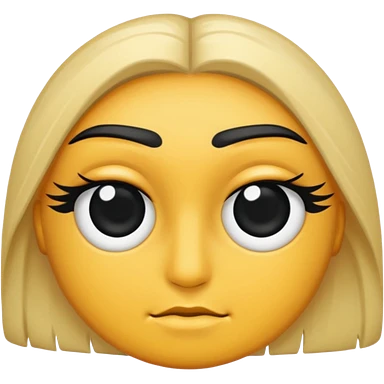 a blonde girl with makeup on and lash extensions and brown highlights emoji