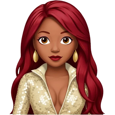 LaTavia Robeson from Destiny's Child with long dark red hair, ivory sequin outfit emoji
