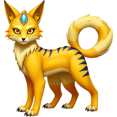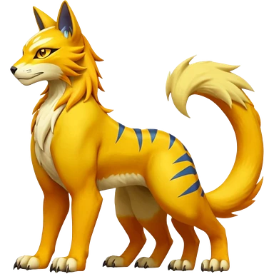 Vernid-Lombax-Koraidon-Renamon-Zeraora-Bastet-Fakémon-Digimon-hybrid-fusion-creature, full body emoji