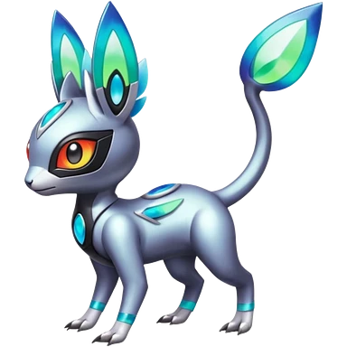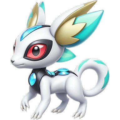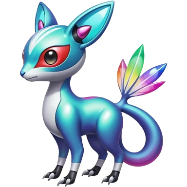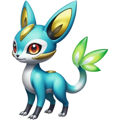 Shiny Colorful Futuristic Cyber-Vernid-Trico-Meloetta-Latias-Koraidon-Peppercat-Protogen-Pokémon-Digimon-Fakémon-fusion-hybrid-creature emoji
