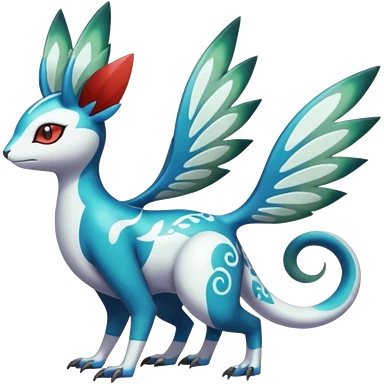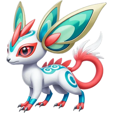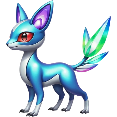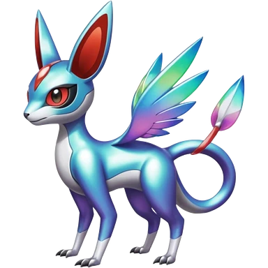Shiny Colorful Futuristic Vernid-Trico-Meloetta-Latias-Koraidon-Peppercat-Protogen-Pokémon-Digimon-Fakémon-fusion-hybrid-creature emoji