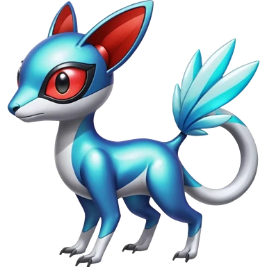 Shiny Colorful Futuristic Cyber-Vernid-Trico-Meloetta-Latias-Koraidon-Peppercat-Protogen-Pokémon-Digimon-Fakémon-fusion-hybrid-creature emoji