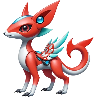 Shiny Colorful Futuristic Oriental Painted Asian Vernid-Trico-Meloetta-Latias-Koraidon-Peppercat-Protogen-Pokémon-Digimon-Fakémon-fusion-hybrid-creature emoji