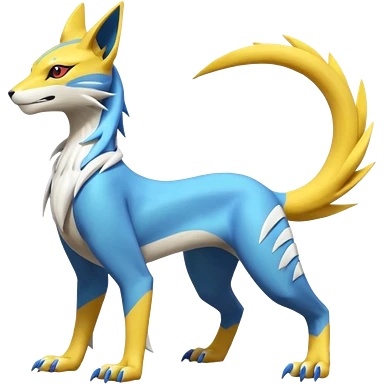 Latias-Vernid-Sergal-Lombax-Koraidon-Renamon-Zeraora-Bastet-Fakémon-Digimon-hybrid-fusion-creature, full body emoji