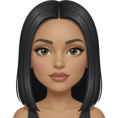 generate the emoji of a girl with fair skin, black hair, bombshell curls, black eyes, long false eyelashes, black eyebrows, latina makeup emoji