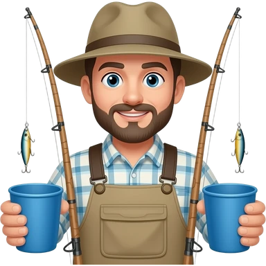 A fisherman with a dirty blonde beard, on a boat, holding a beer in one hand and casting a fishing line emoji