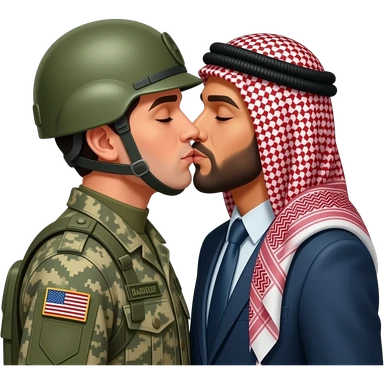 Dark haired Arab man standing next to a pickle with a face on it emoji