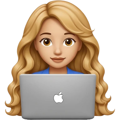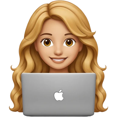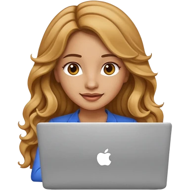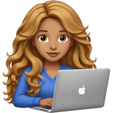 Pretty girl with long, light golden brown wavy hair, Latina, with a laptop, AI-generated emoji. emoji