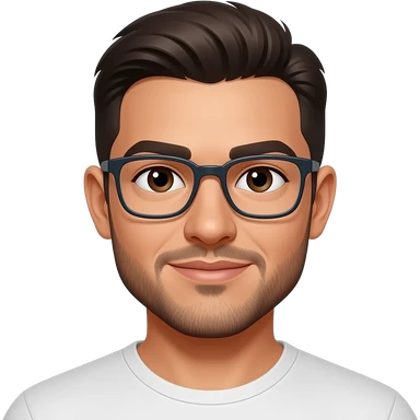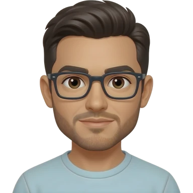 latino man 40s, very short dark brown hair, dark brown eyes, short beard and glasses emoji