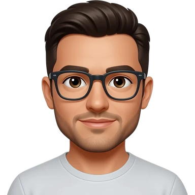 white latino man, very short dark brown hair, dark brown eyes, short beard and glasses emoji