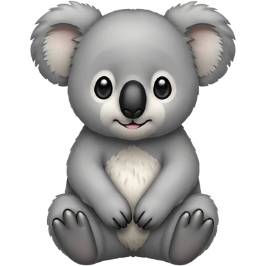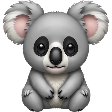 Head of a grey koala, round face, big fluffy ears, large black nose, front-facing, cute and simple style emoji