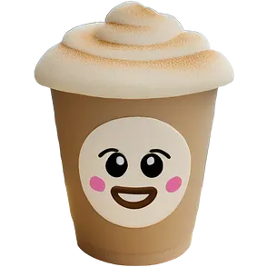 cappuccino cup with a heart-shaped latte art on top, steam rising, cheerful emoji emoji