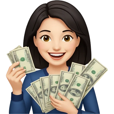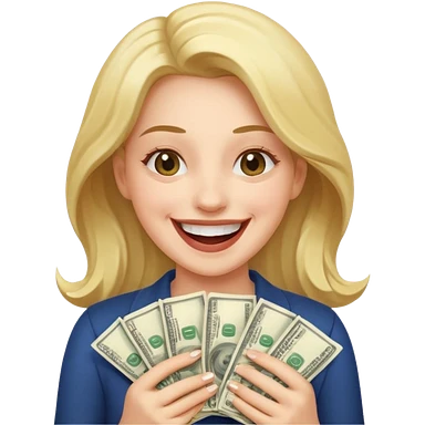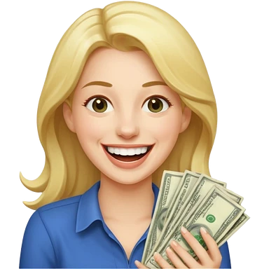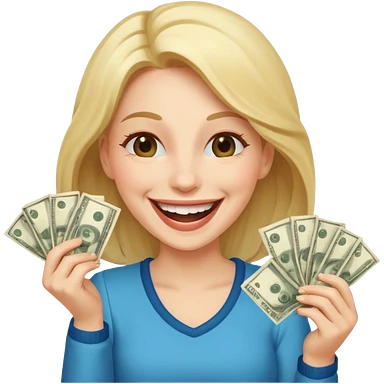 laughing woman holding lots of money emoji