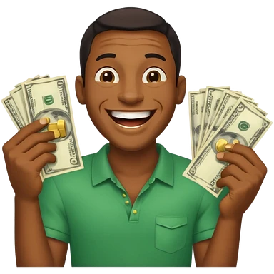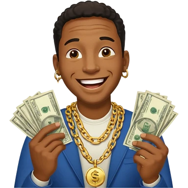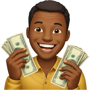 laughing black man holding lots of money emoji