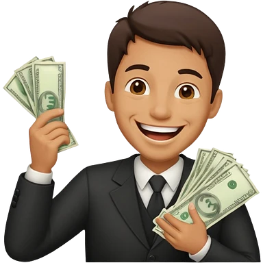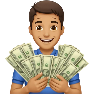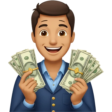 laughing man holding lots of money emoji