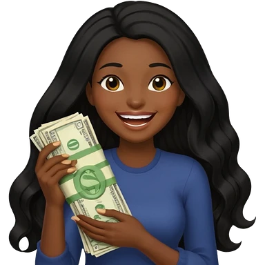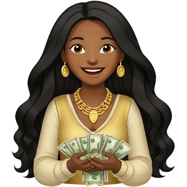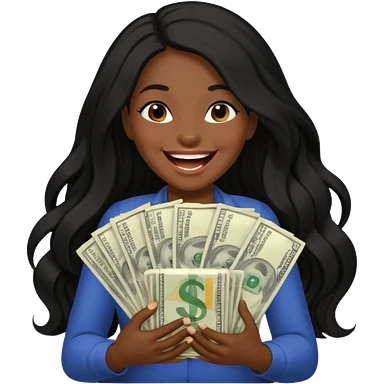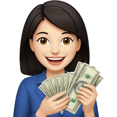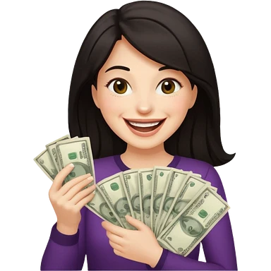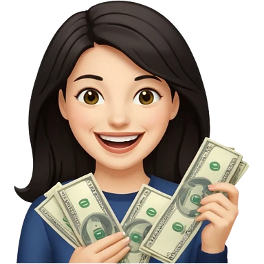laughing dark long haired woman holding lots of money emoji