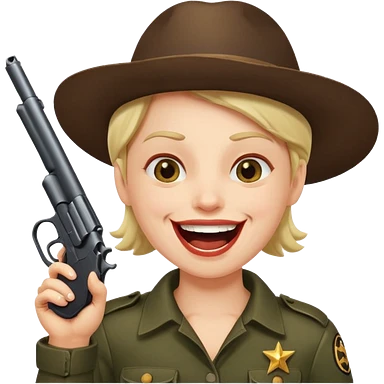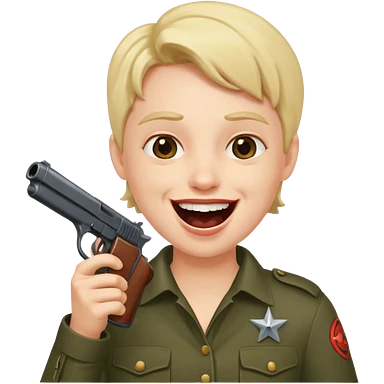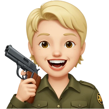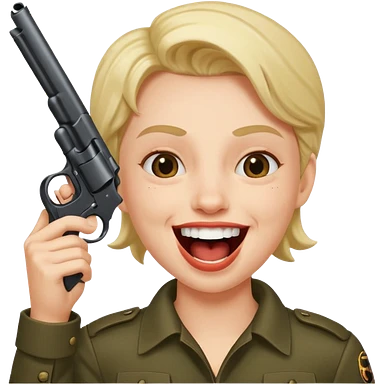 Laughing face with gun pointed into the mount emoji
