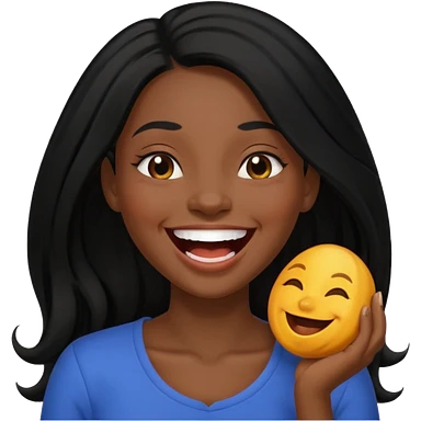 laughing black long haired woman emoji
