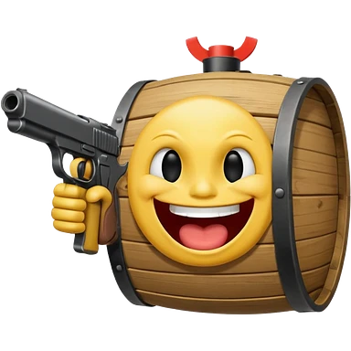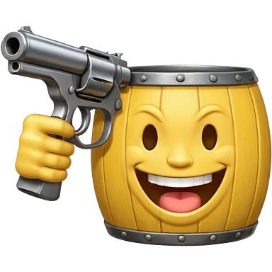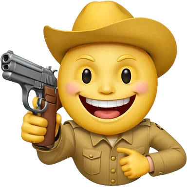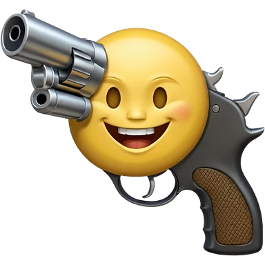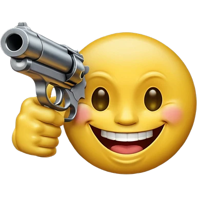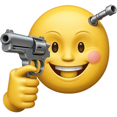 stylized emoji of a gun pointed at a cartoon head, no violence, no blood, neutral expression emoji