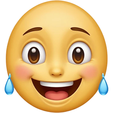 Emoji, laughing face with tears of joy exactly from eyes, wide smile, big eyes emoji