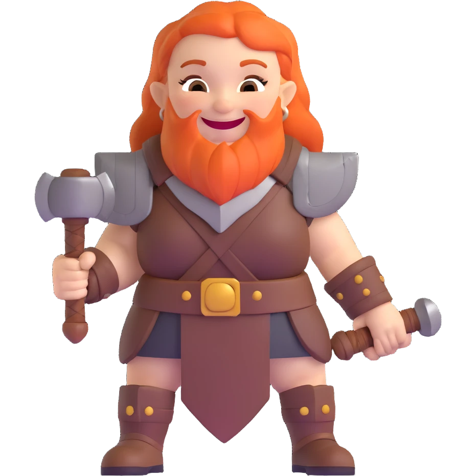 laughing female dwarf warrior from Lineage 2 with battle hammer emoji | AI Emoji Generator