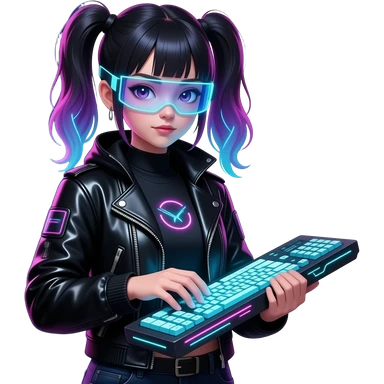 Girl hacker wearing Cyberpunk outfit and pigtails emoji