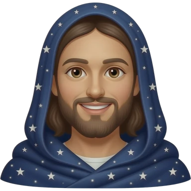 Laughing Jesus and the night sky filled with stars emoji | AI Emoji Generator