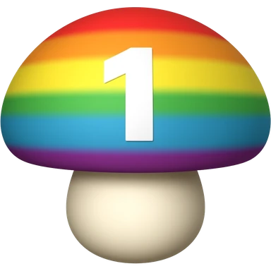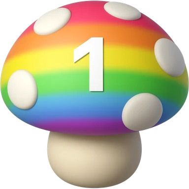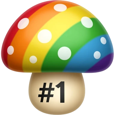 Happy mushroom with sparkly eyes, in a kawaii style with a shiny cap emoji