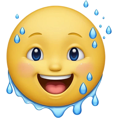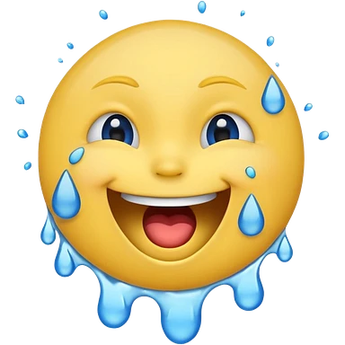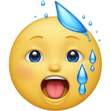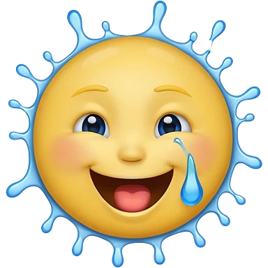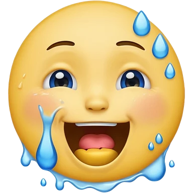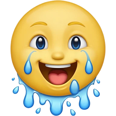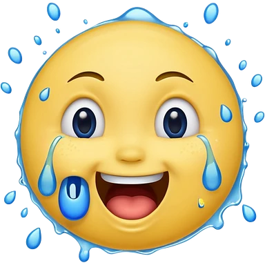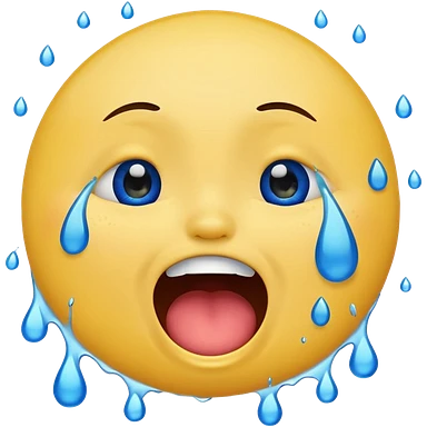 Emoji, yellow round laughing face, open mouth with Splashing blue tears from the eyes emoji