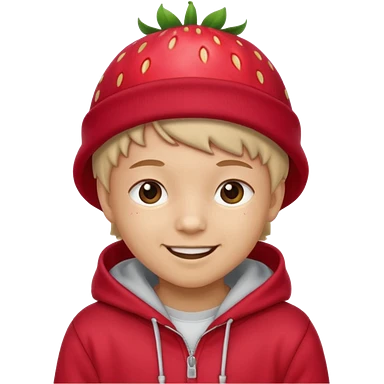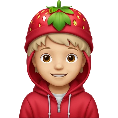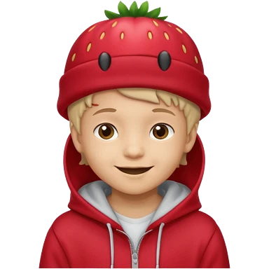 Kids in Fruit Clothes A kid wearing hoodies and strawberry hat emoji