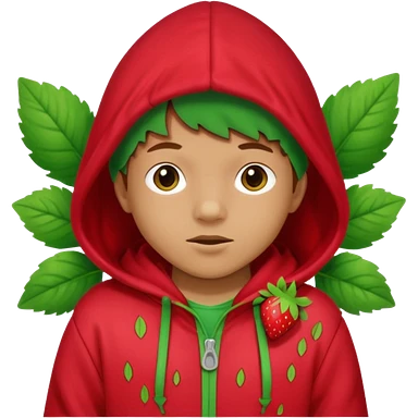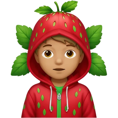 Kids in Fruit Clothes A kid wearing a strawberry hoodie with green leaf hood. emoji