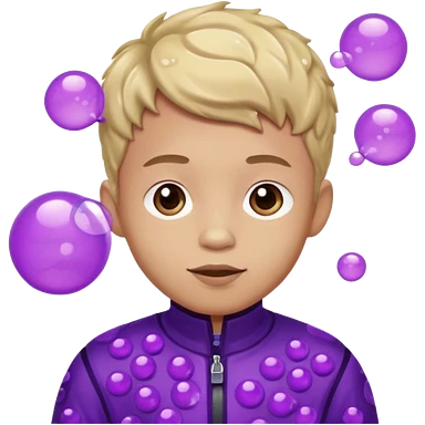 Kids in Fruit Clothes A boy in a grape outfit with round purple bubbles. emoji