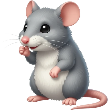 A Rat that is laughing out loud with a finger pointing at the person that read the text emoji