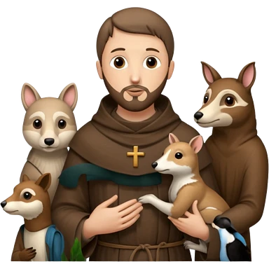 Saint Francis of Assisi cartoon modern type with animal to be used as an AI crfreation in HeyGen.com emoji