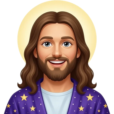 Laughing Jesus with a bluish purple starry robe emoji
