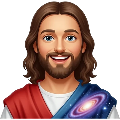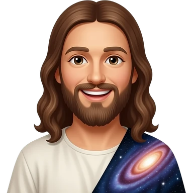Laughing Jesus and the galaxy on his shoulder emoji