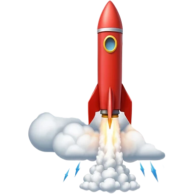 launching a rocket from a platform, with huge cloud emoji | AI Emoji Generator