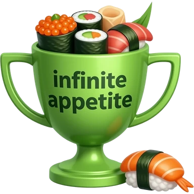 award with written "infinite appetite" perfect but substitute color blue with green. substitute laurel with sushi emoji