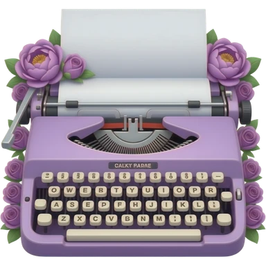 lavender purple bright aesthetic typewriter with lavender peonies and roses decorating the sides emoji