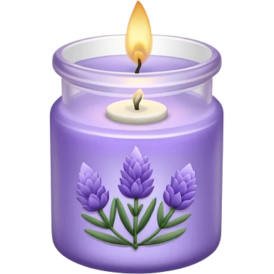 Lavender candle – purple wax in frosted glass jar with lavender flower inside emoji | AI Emoji Generator