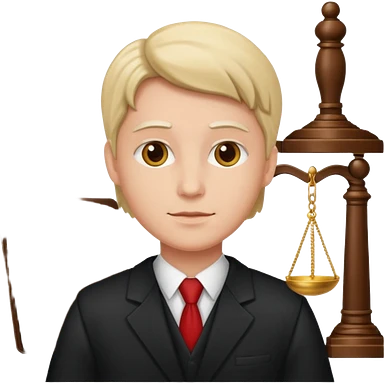 lawyer emoji, wearing suit and tie, holding scales of justice, neutral background emoji