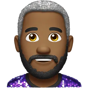 sam richardson in a black sequin suit holding a microphone singing (portrait,-front-facing,-apple-ios-17-style) emoji