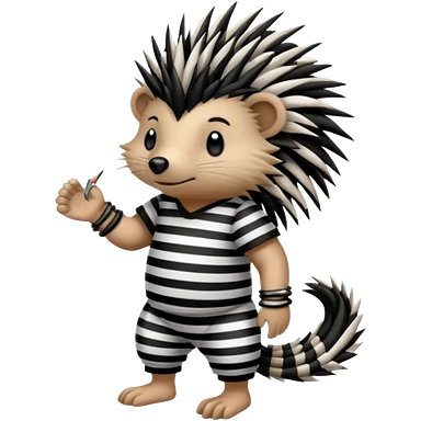 Laying down porcupine with black and white striped prison outfit, and ankle bracelet emoji