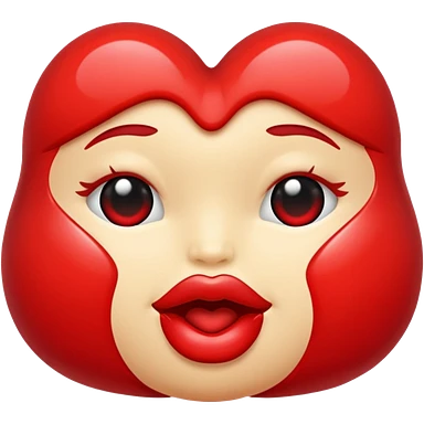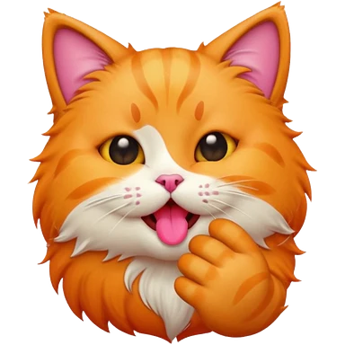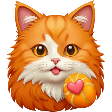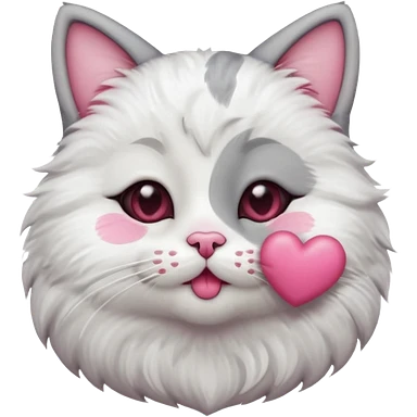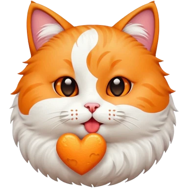 A cute circular cat blowing a smooch kiss with heart and little bite on the lower lip emoji