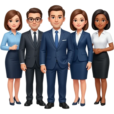 A leadership team of 5 people with different genders and cultures in semi-formal business clothing emoji