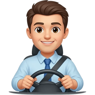 Learning to drive, brown hair, wearing t-shirt, no tie emoji | AI Emoji Generator