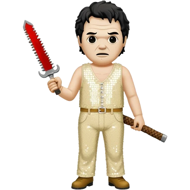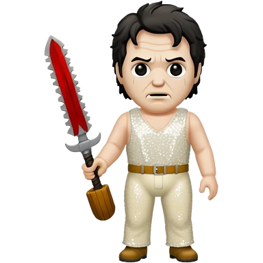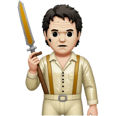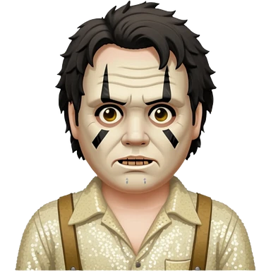 Leatherface with tan mask with dark brown hair, ivory sequin outfit emoji | AI Emoji Generator