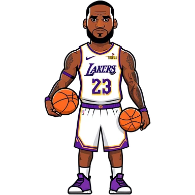 LeBron James in a cartoon sticker style, wearing a Lakers jersey, smiling emoji