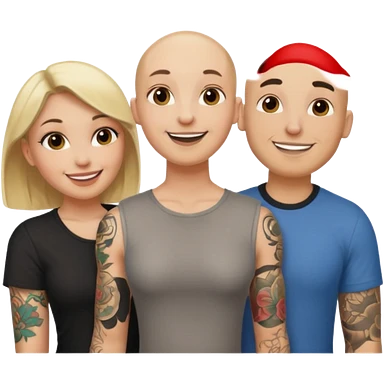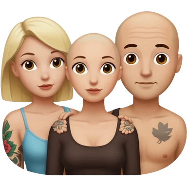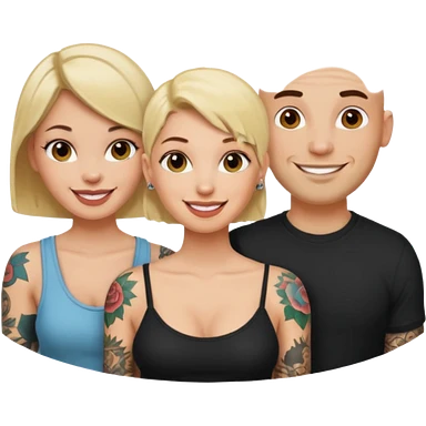 throuple blonde femaleand brunette female with bald tattooed emoji