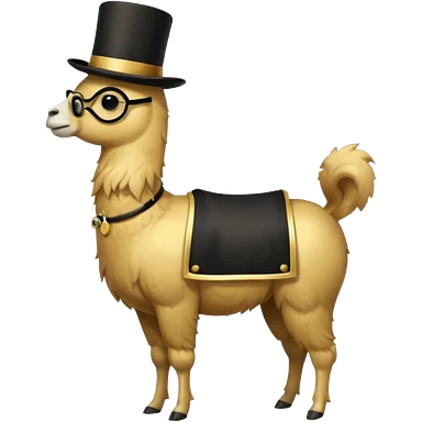 A small golden llama silhouette wearing a black top hat emoji